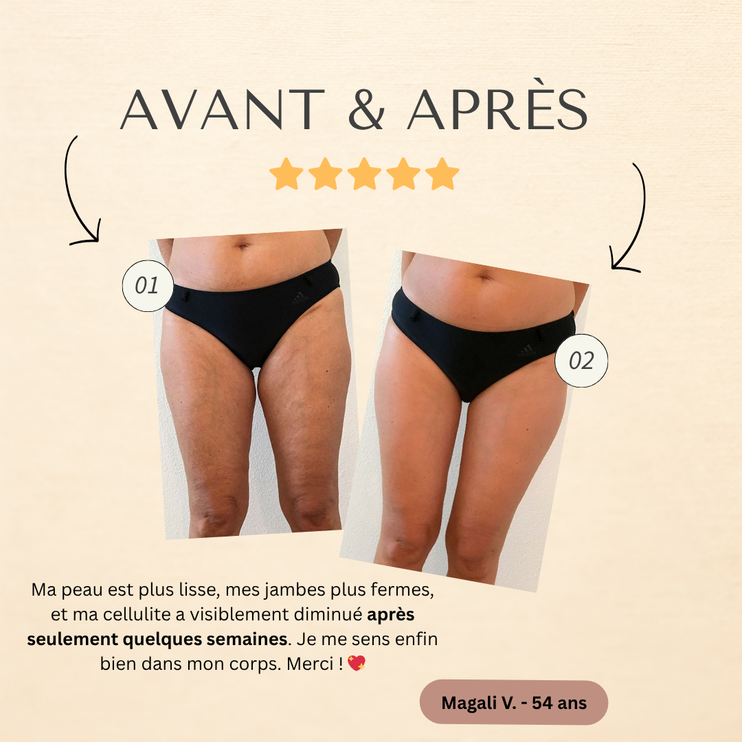 Des utilisatrices ont constaté une réduction visible de la cellulite, avec une peau plus lisse et ferme dès la première utilisation.